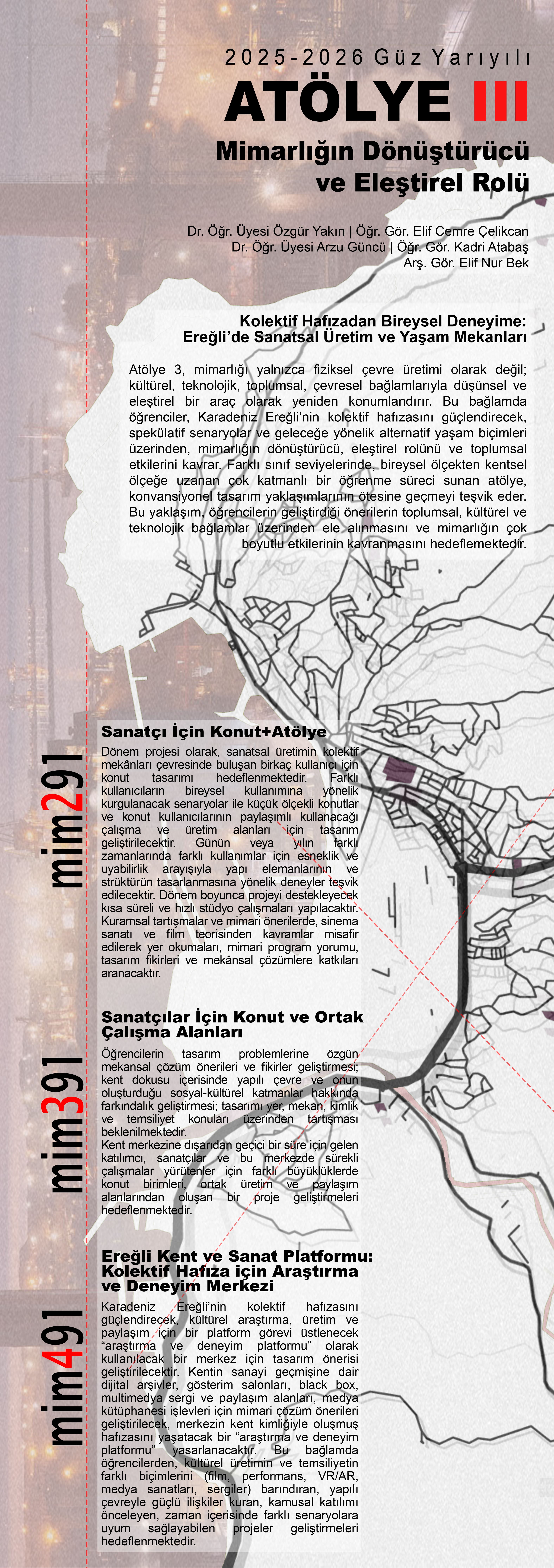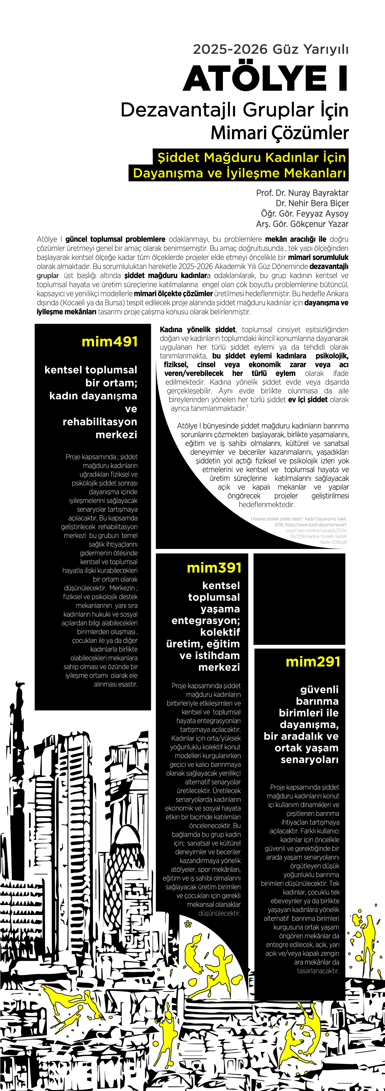 2025-2026 Akademik Yılı Güz Dönemi Mimarlık Tasarım Stüdyoları Düşey Atölye Posterleri